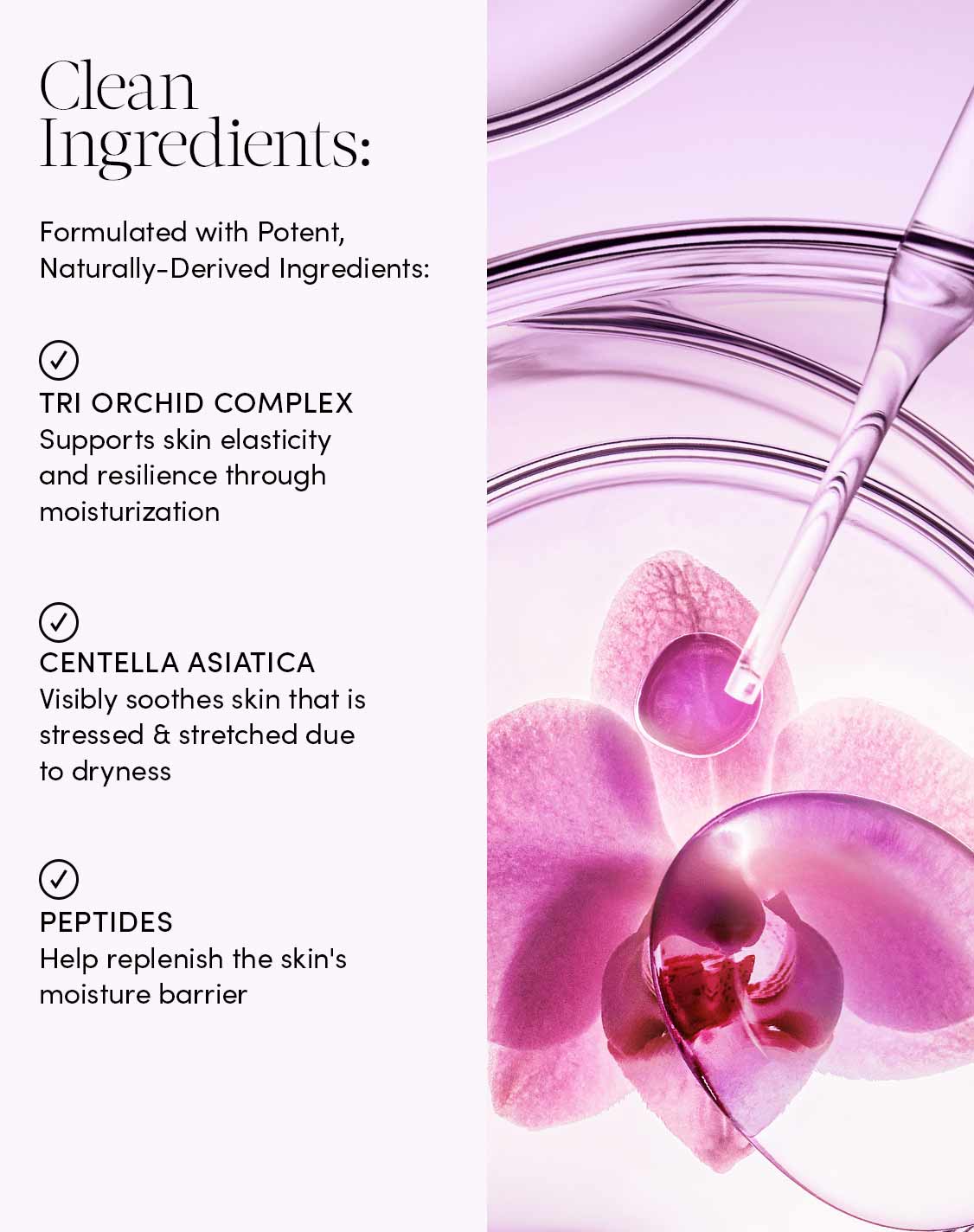 Let your love stretch out. Enriched with our Tri-Orchid Complex, this fast-acting 14-day regimen is clinically proven to improve the appearance of stretch marks twice as fast as the leading stretch mark treatment*. Formulated with potent, cleanly-derived ingredients to treat your marks of motherhood with care.